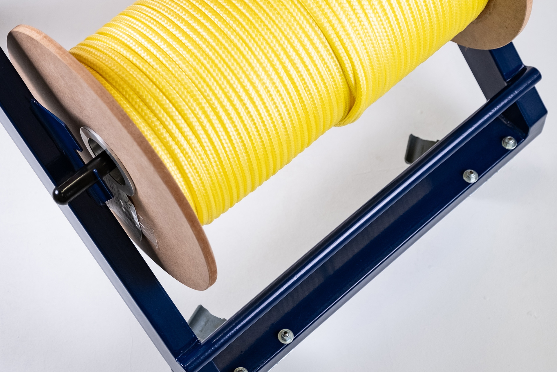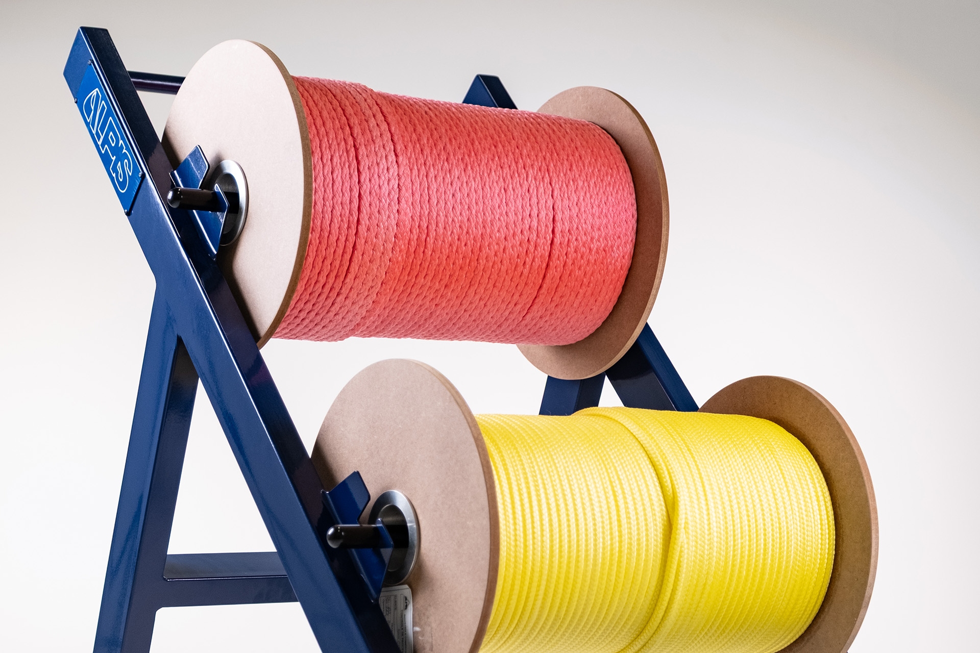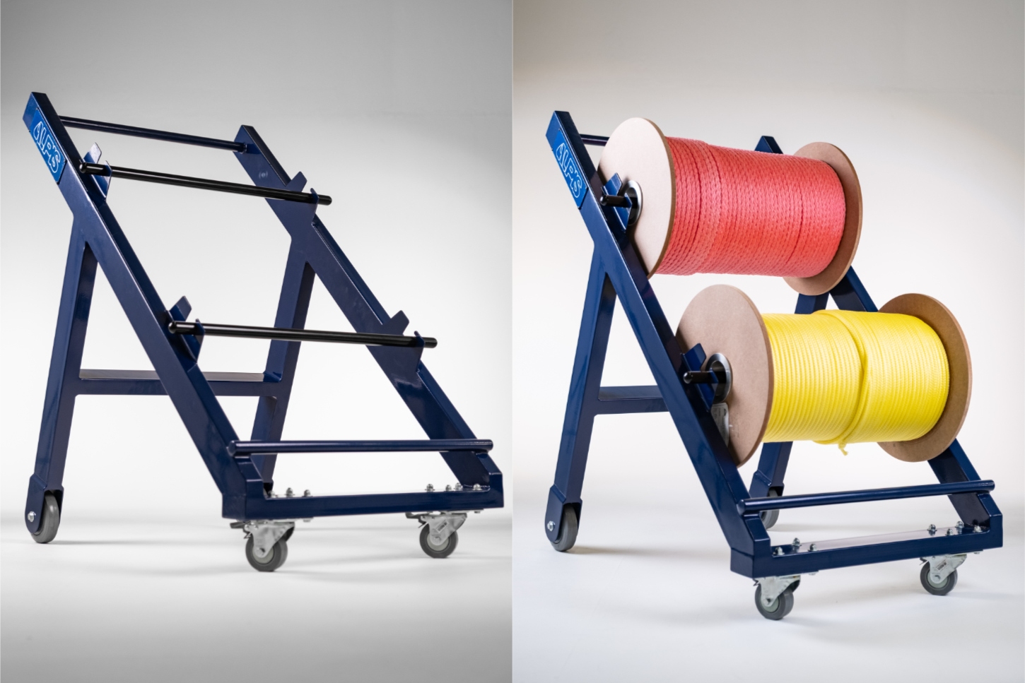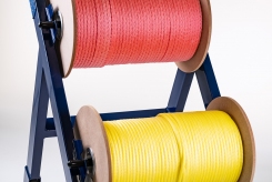 Para facilitar a locomoção dos carretéis de cordas dentro das fábricas tendo capacidade para levar até 2 rolos de cordas e auxilia o desenrolar da corda evitando que a mesma fique torcida no sistema.
